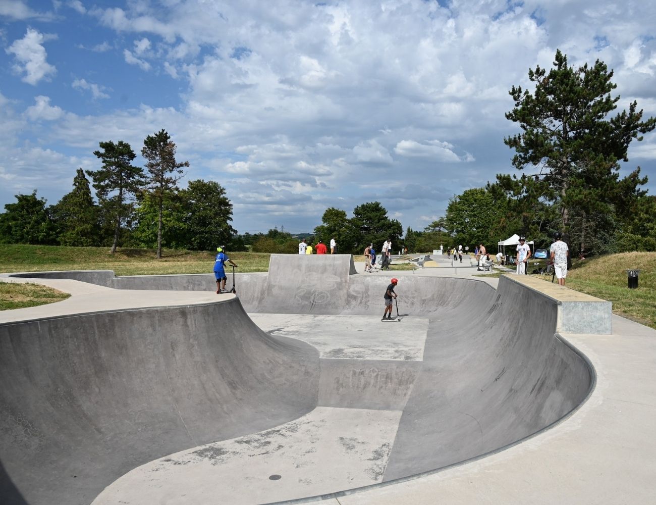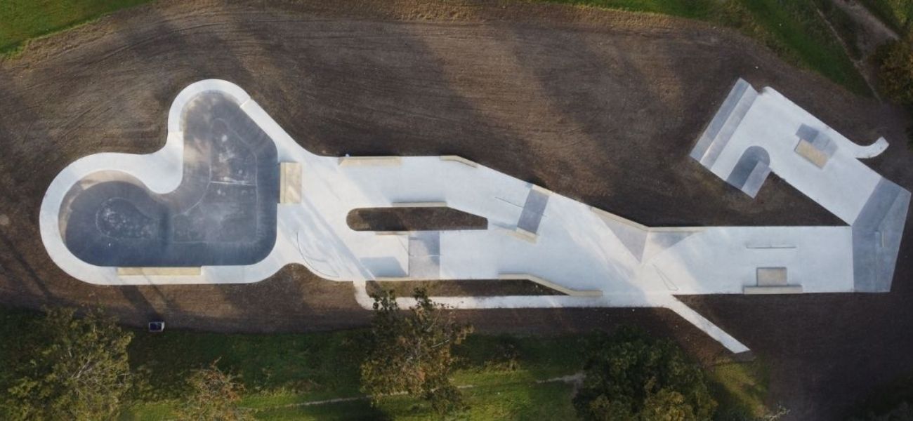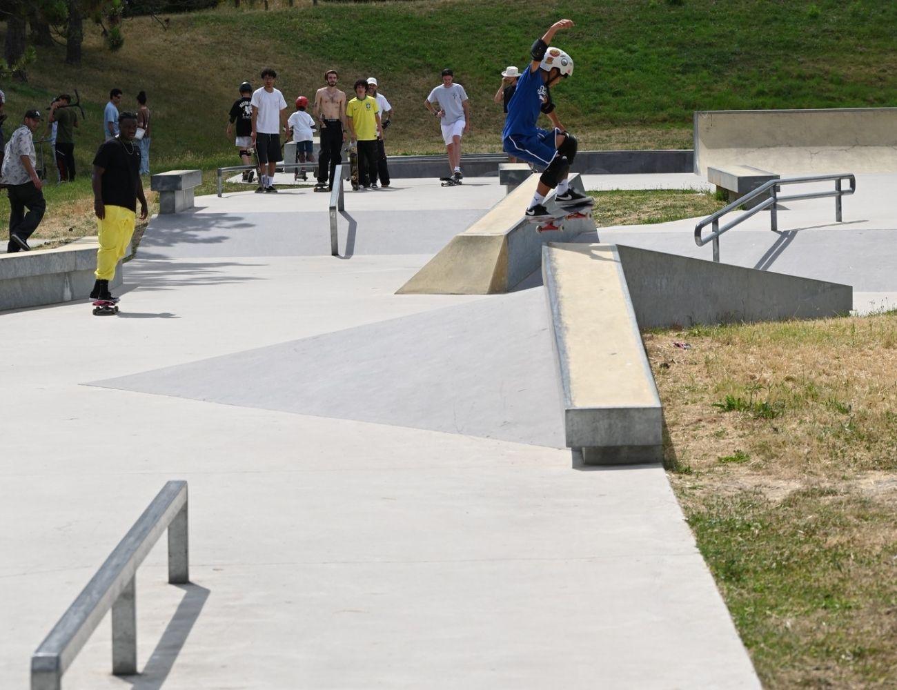 Descriptif : Un skatepark moderne et polyvalent en béton coulé sur place, pensé pour tous les niveaux. Son aménagement paysager crée un cadre agréable et convivial.